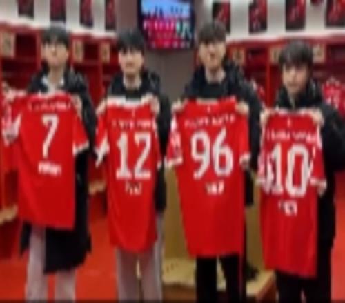 电竞体育12月4报道 T1分享动态:选手们在拜仁主场手持球衣合照。...