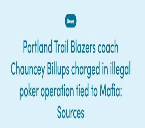 北京时间10月23日,据名记Shams报道,ESPN消息人士透露,波特兰开拓者队教练昌西·比卢普斯因涉嫌非法赌博被联邦调查局逮捕。两名高级执法官员表示,该调查与他执教的比赛无关。美媒GMA跟进报道,比卢普斯被捕是因其涉及与黑手党有关的非法扑克活动被起诉。消息人士称,比卢普斯在俄勒冈州被捕,预计他将于明日首次出庭。