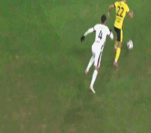 开场仅5分钟,杨明洋中场拼抢时踢到了陈柏良的脚踝,主裁判李海新对杨明洋出示黄牌。