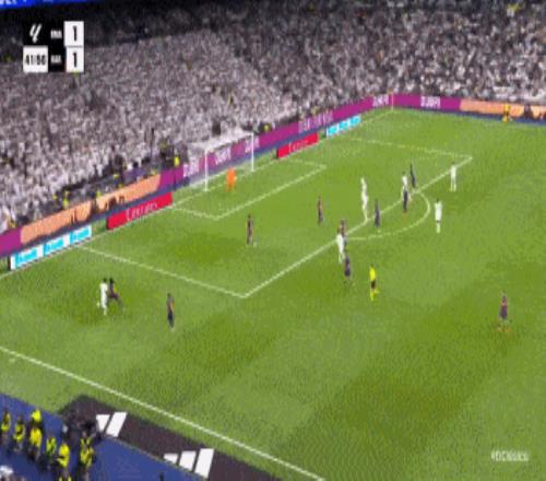 43' 米利唐头球摆渡,贝林厄姆轻松破门,2-1!