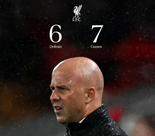 利物浦自9月27日各项赛事输6场,五大联赛同期最多