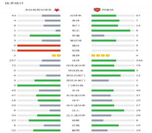 阿森纳客场30布拉格斯拉维亚,梅里诺双响,萨卡点射