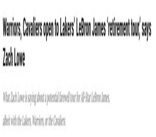 詹姆斯下季离开湖人骑士勇士最新态度曝光:愿为他筹备退役巡演