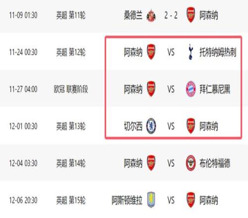 根据赛程安排,英超第12轮,阿森纳将迎战热刺,之后他们还将对阵切尔西。在短短7天之内,阿森纳要连续踢2场伦敦德比,更绝的是,在这2场德比之间,阿森纳还要在欧冠出战拜仁,哪怕阿尔特塔选择在欧冠轮换(小组出线问题不大),全力保障联赛,阿森纳也很难2场英超全取6分,他们甚至有可能连1分都拿不到。