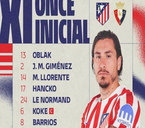 - 马竞vs奥萨苏纳:格子、小蜘蛛联袂首发,小西蒙尼替补